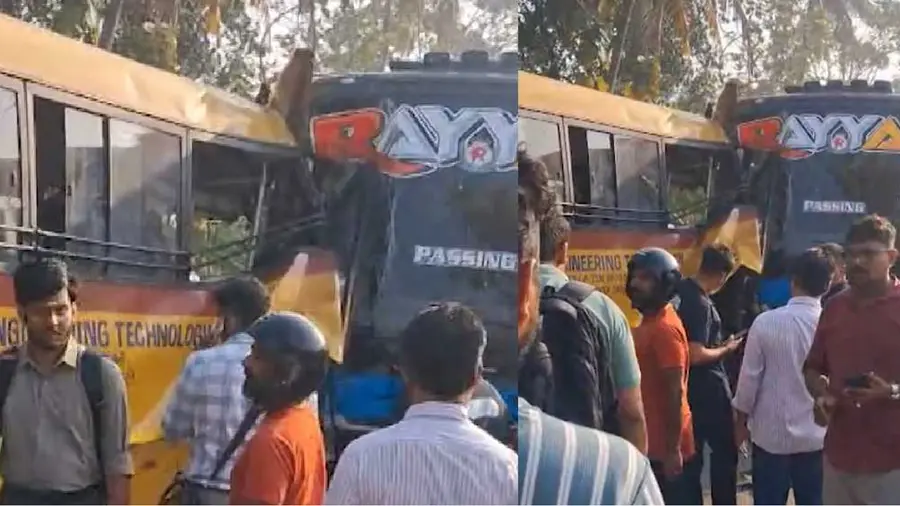 കൊച്ചി : എറണാകുളം പൂക്കാട്ടുപടിയിൽ കോളേജ് ബസും സ്വകാര്യ ബസും കൂട്ടിയിടിച്ച് അപകടം. നാലു വിദ്യാർഥികൾക്കും കോളേജ് ബസ് ഡ്രൈവർക്കും അടക്കം ഒമ്പതുപേർക്ക് പരിക്ക്. രാവിലെ എട്ടരയോടെയാണ്