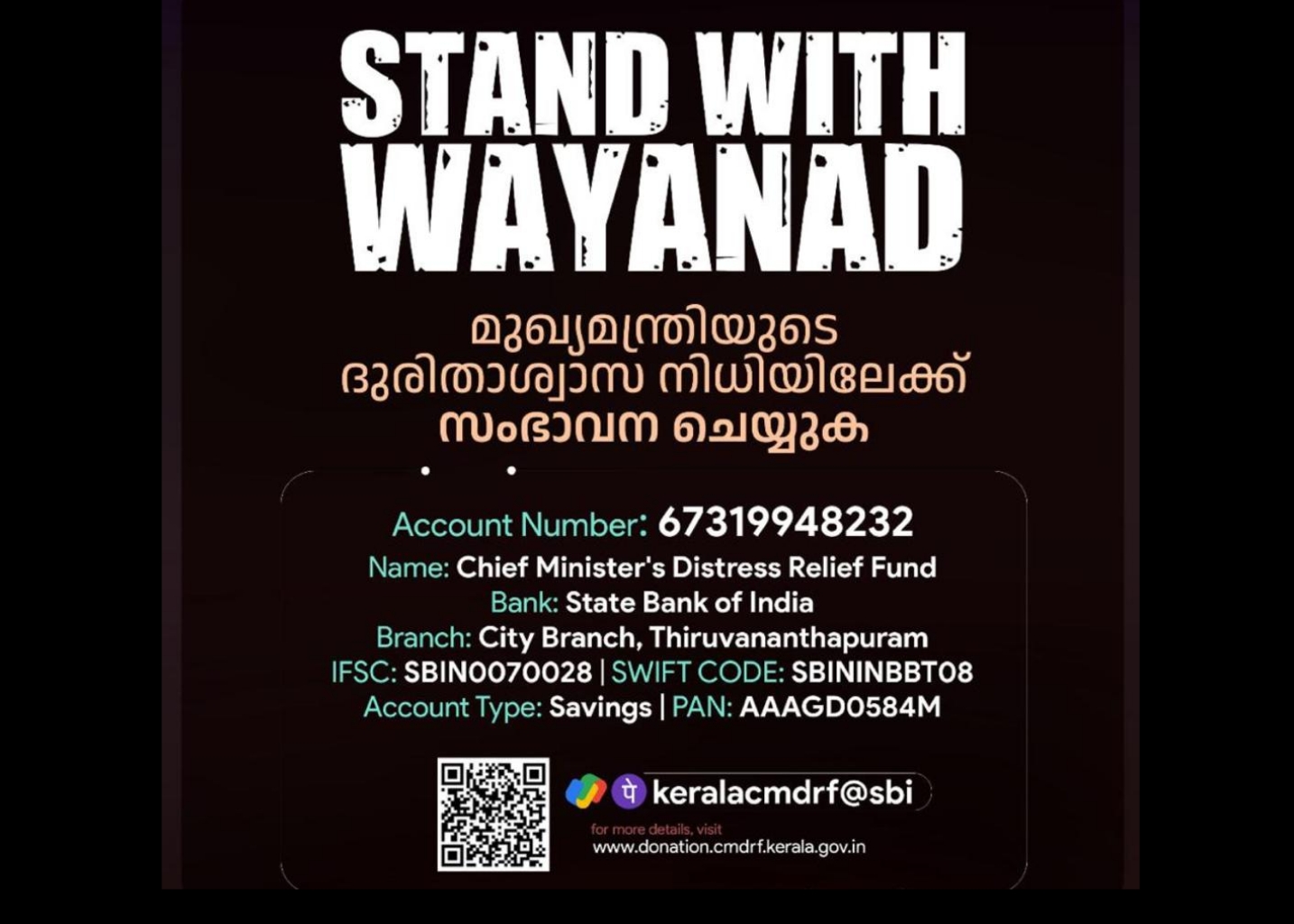 വയനാട്ടിലെ ജനങ്ങളോട് ഒപ്പം; മുഖ്യമന്ത്രിയുടെ ദുരിതാശ്വാസ നിധിയിലേക്ക് സംഭാവന ചെയ്യുക
